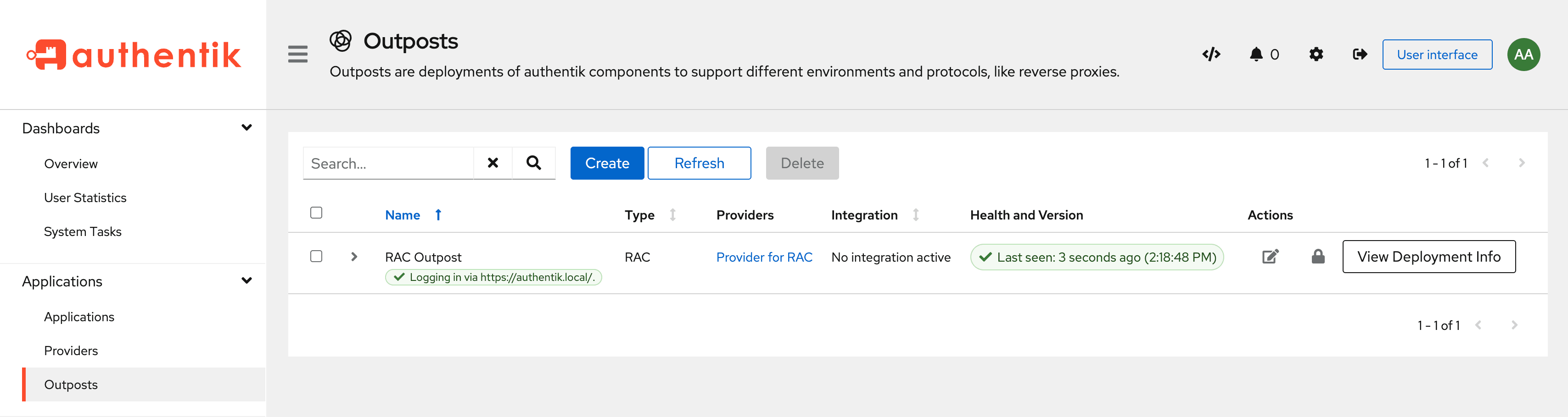 An up-to-date outpost will show a green message indicating the last successful connection with authentik: